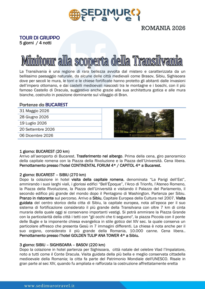 Minitour alla scoperta della Transilvania da Bucarest 5 giorni